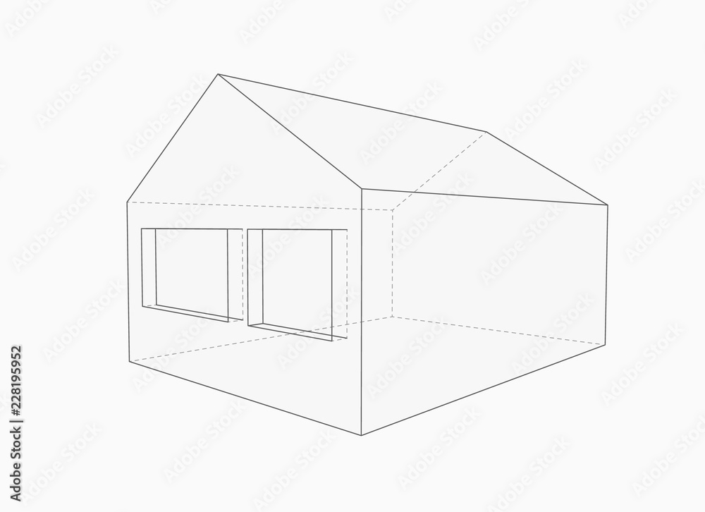 Easy How To Draw A 3d House Tutorial And 3d House Coloring Page